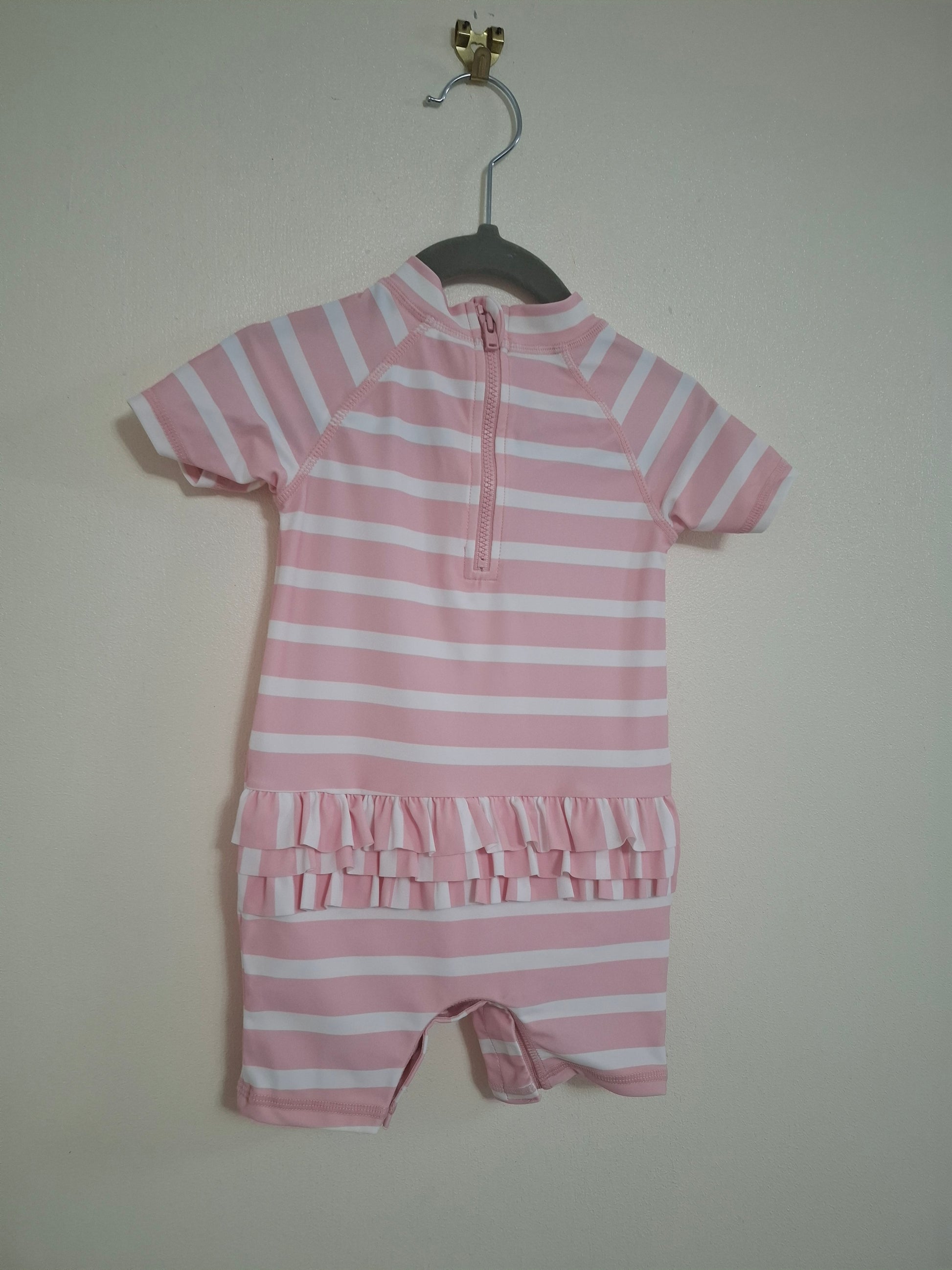 Stay sun-ready in our 6-9m Girls Swimsuit. With short sleeves for added coverage and comfortable shorts, this swimsuit will keep your little one protected and stylish all day long. Perfect for beach days, pool parties, or just splashing around in the backyard.